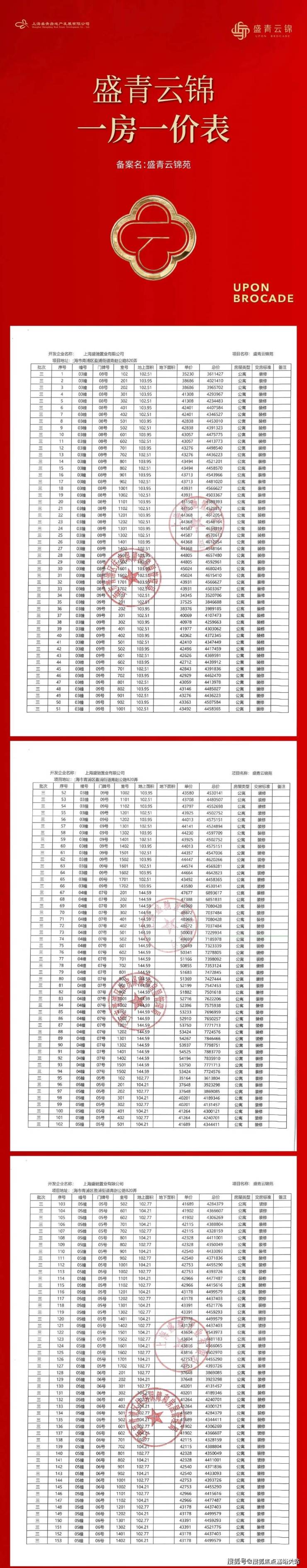 一房一价表:
