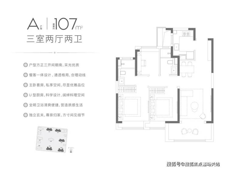 项目建面约107㎡户型集LDBK一体化、玄关入户、动静分区设计于一体,在功能性与舒适度上几乎都做到了极致!