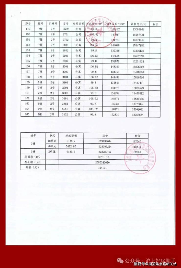 均价124191元/㎡ 共165套