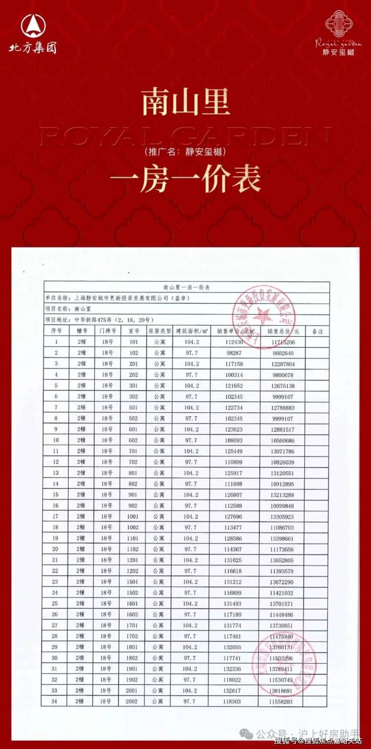 静安玺樾三期一房一价表▼