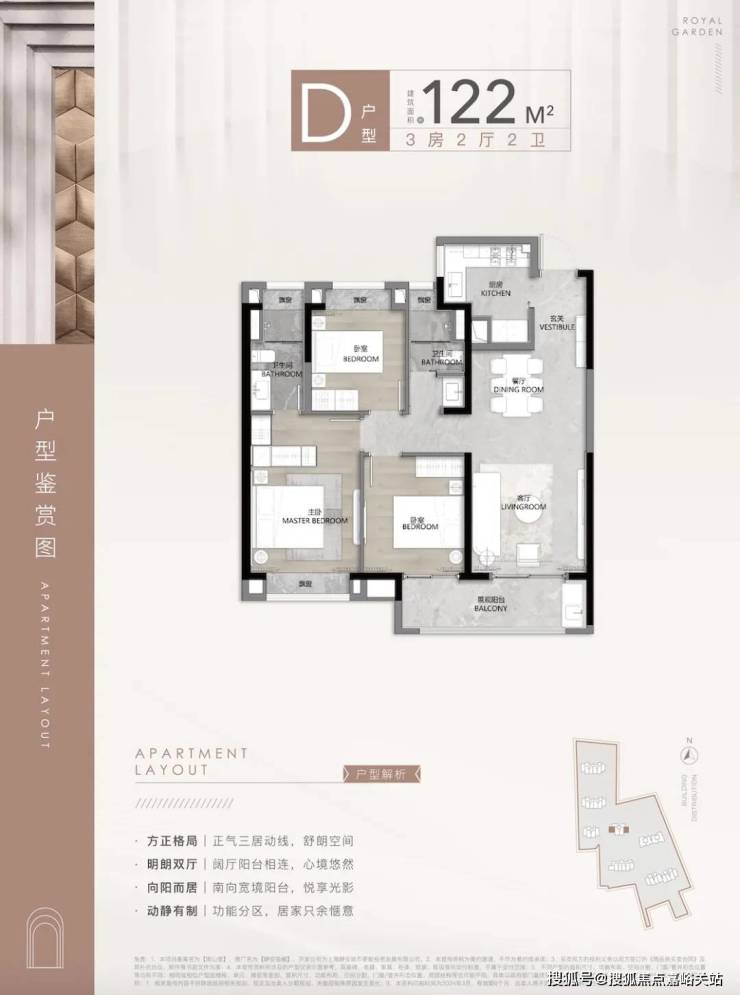 第一个亮点, 就是动静分离,功能区和休息区互不干扰,客餐厅、厨房等公共活动区集中在一侧,卧室等休息区全部一侧,保证了私密性!