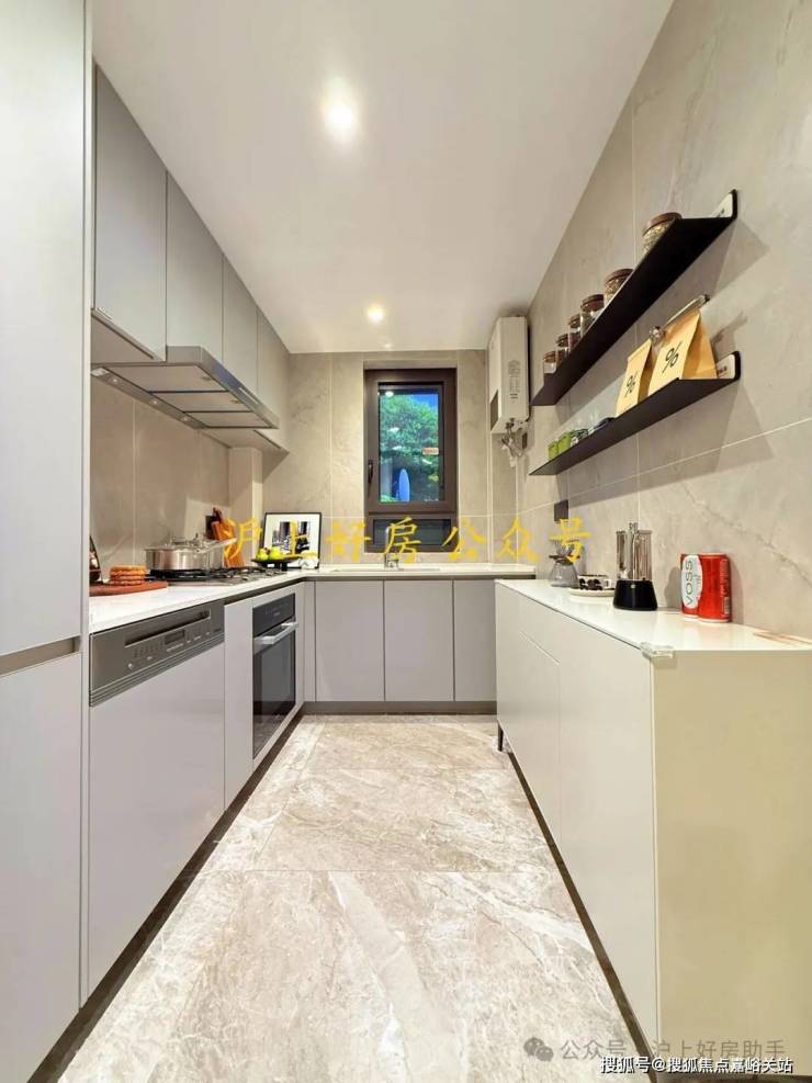 第五个亮点, 宽阔的L型厨房,两面靠墙,灶台和水槽布置空间充足,实际使用能够满足各类烹饪需求。