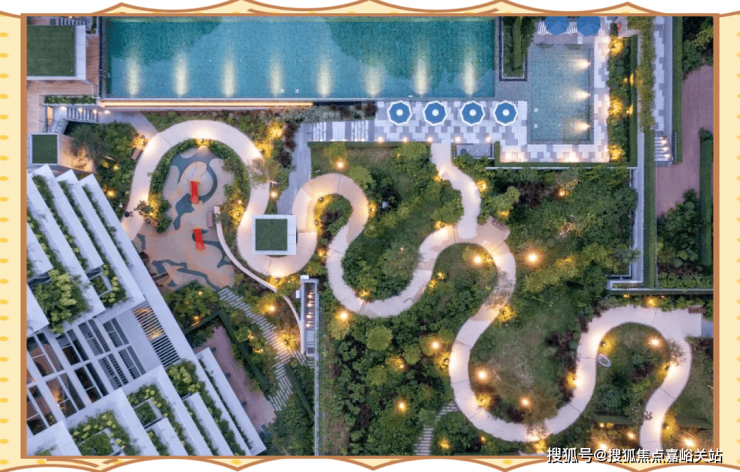 6米高差的立体园林初见一角,能够看到“入境、观景、绿岛、秘境”四个景观点位,整个下沉式庭院串联了一主一辅的两条主景观动线,横看成岭侧成峰的城市峡谷,名不虚传。