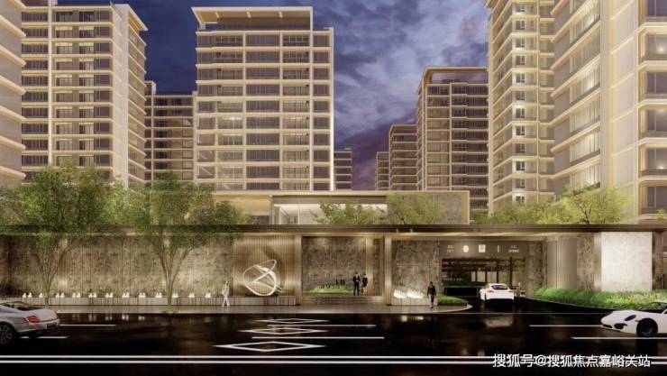 尺度大气的现代风格门头,入口展现艺术水苑、叠水瀑布以及层级绿化,彰显归家仪式感。