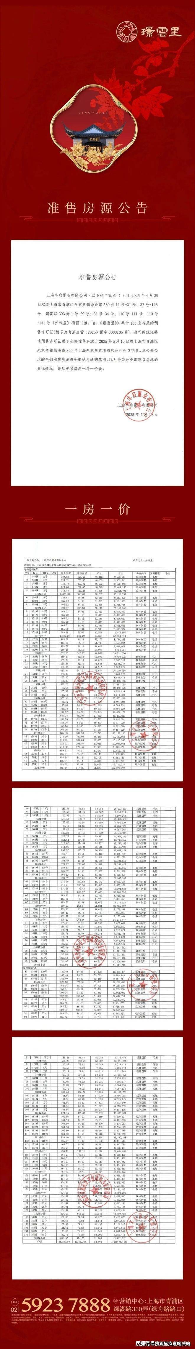一房一价表如下:上海璟云里官方售楼处电话:400-118-5086√√√【已认证】