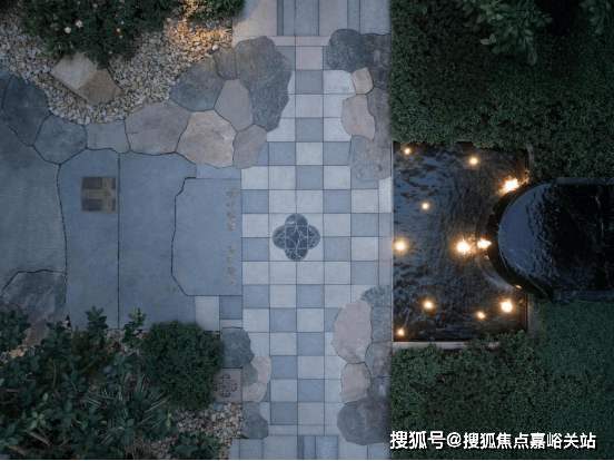 2、 地面延续酒店式落客区 海棠纹拼花镶钻 , 铁打纹工艺 ,其间还有 老石板 , 青石板 , 中国黑老石皮 , 柏坡黄的石皮 等原石原面铺装,老石皮从大料里取出,数量少而贵,由此也可看出保利·永兴里在别墅打造上是真舍得,也是真高级。