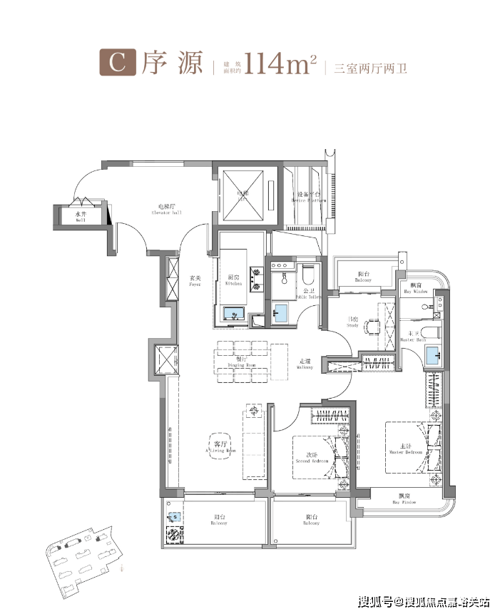 再来看建面约114㎡三房,百平三房的升级款,让人拥有“这是120㎡”的错觉!