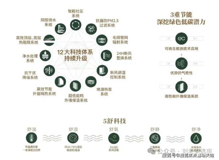 项目深度进阶 12大科技系统、三重节能与五舒科技 等技术核心,以 更智慧化、定制化、生活化的品质空间 , 适配高净值客群追求品质的居住需求。