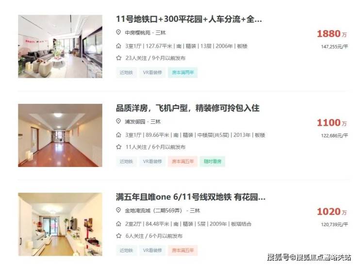 板块内部,由于三林板块规划起步晚,「永泰三里城」周边几乎都是次新电梯房,板块内二手房挂牌均价 9万/㎡ 左右,不少户型较好的楼盘甚至能跑上 10w+ 。