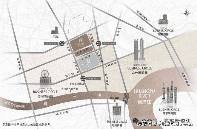 直线距离约3公里范围内,汇聚苏河湾万象天地、北外滩商圈、南京西路商圈、外滩商圈、陆家嘴商圈等