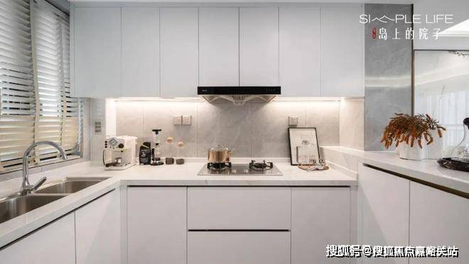 厨房是L型布局,有意思的是在侧边做了一个岛台,这个设计在约75㎡的户型中非常少见。