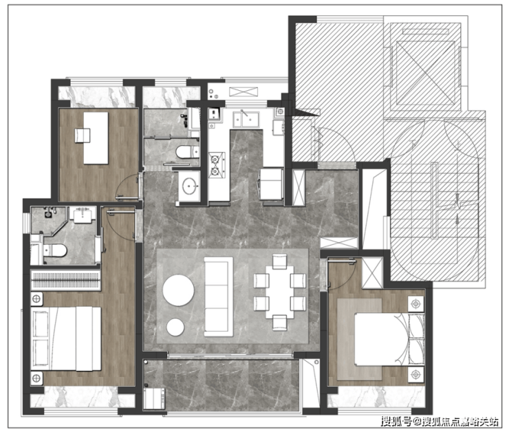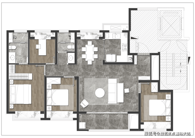 在设计之初,森兰·航荟名庭就考虑到了连廊带来的潜在负面影响,因此整体采用一梯两户无连廊的设计方案,从根本上解决了隐私和采光影响。
