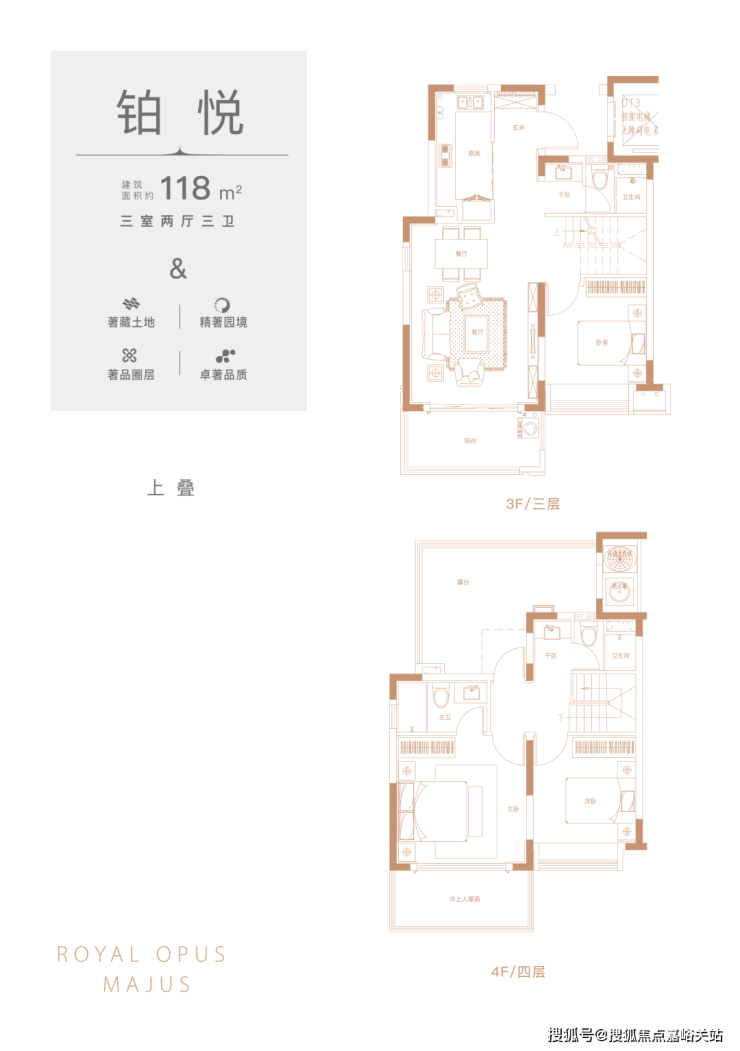 上叠:118(3室2厅3卫),150(4室2厅3卫),200(4室2厅4卫)