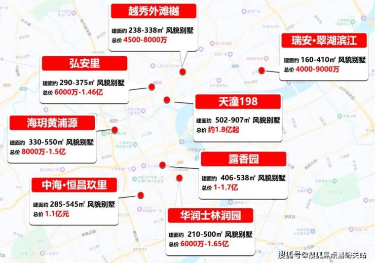 臻稀地段遇上鼎流产品,风貌别墅占据了上海顶豪塔尖位置! 黄浦区风貌别墅单价25-30万/㎡,北外滩和东外滩滨江风貌别墅21-24万/㎡!总价则以大几千万起,甚至上亿!