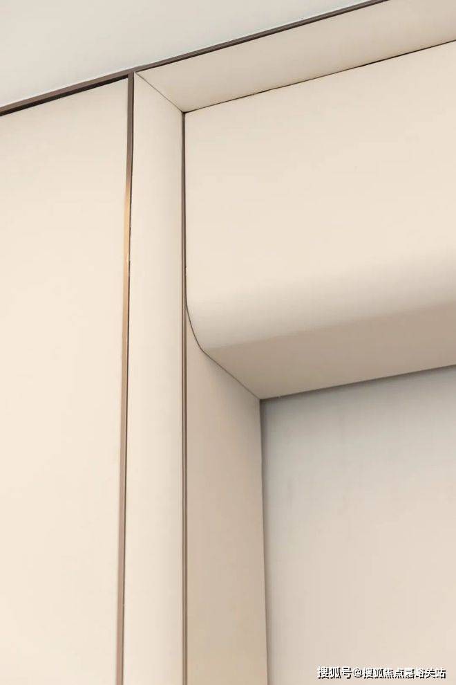我们来看墙体的细节处,墙面同样做了层叠设计,从侧面看,立体感明显。石材墙面开槽,镶嵌有金属条点缀,注意,这样的点缀条,也做了弧形处理。宝华紫薇之星售楼处电话☎:400-856-9058☑️☑️