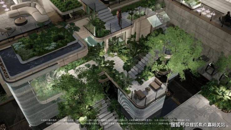 社区景观方面,项目运用室内手法室外化设计构想, 将垂直景墙、悬浮观景台与叠水景观立体穿插,极具立体感,并随时拾获国际范与奢华体验。