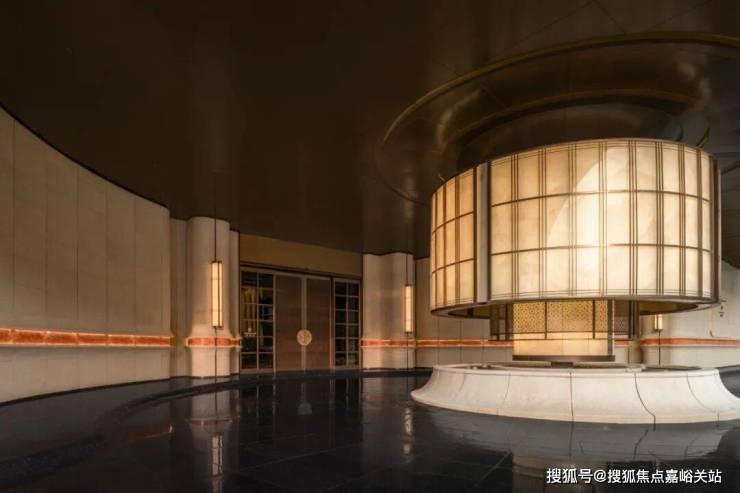 另外,项目首层通过硬朗直线呼应柔和曲线勾勒,辅以温润石材与古铜色金属线条融合,打造东西方美学共融的艺术藏品