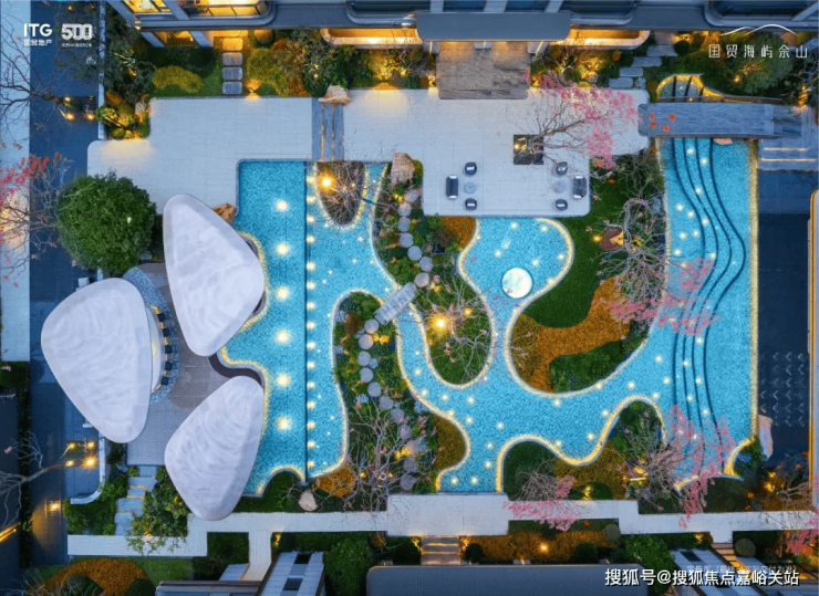 项目拥有一座约1600㎡度假酒店中岛,整个中岛内拥有海岛风层叠水池、社交客厅以及庭院架空层,共鸣多样化松弛生活场景。再以50年树龄的乌柏点缀,整个社区之精致,甚至能媲美豪宅。