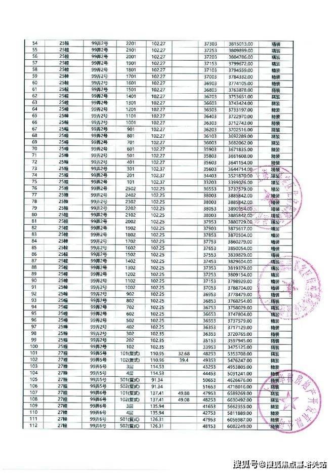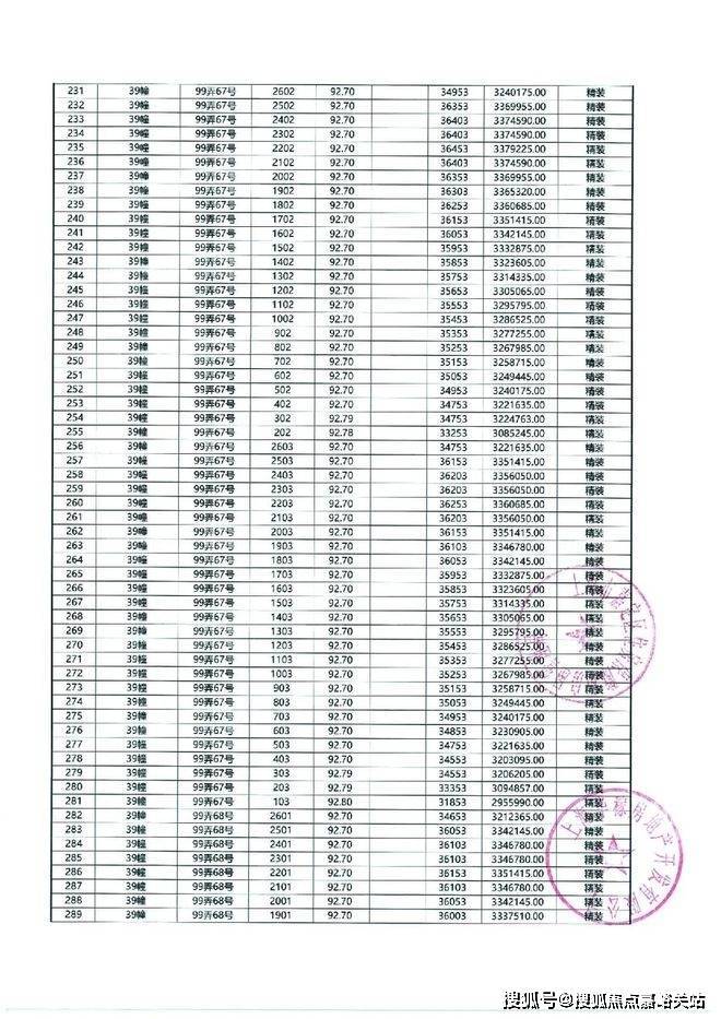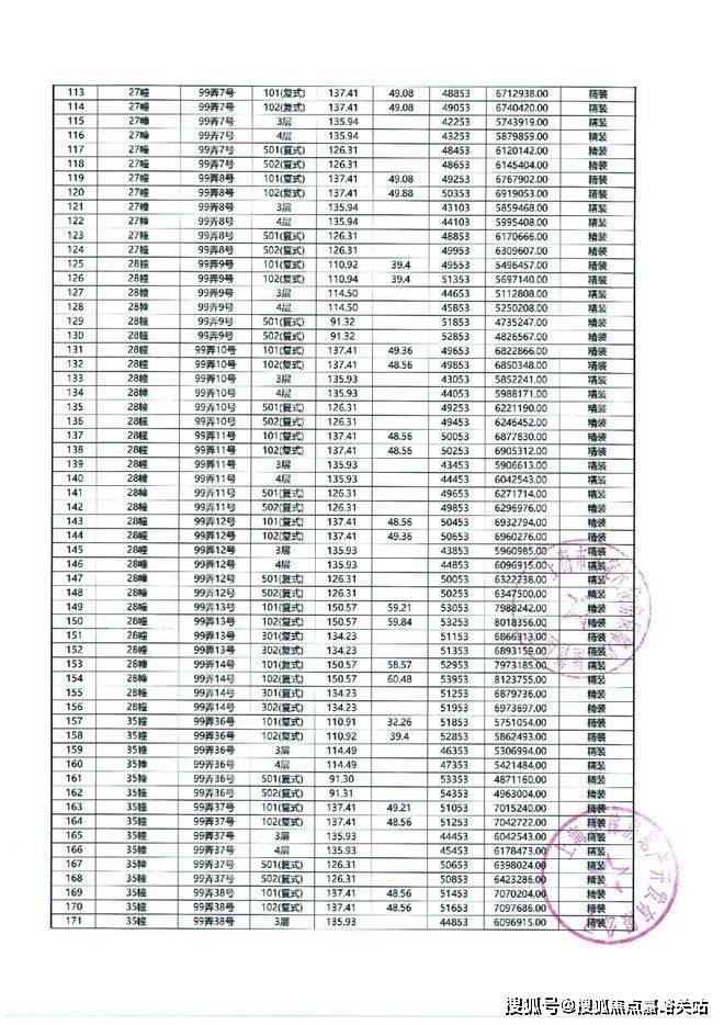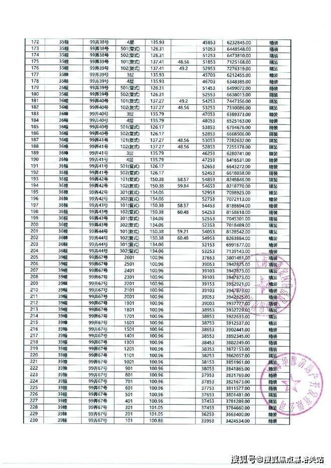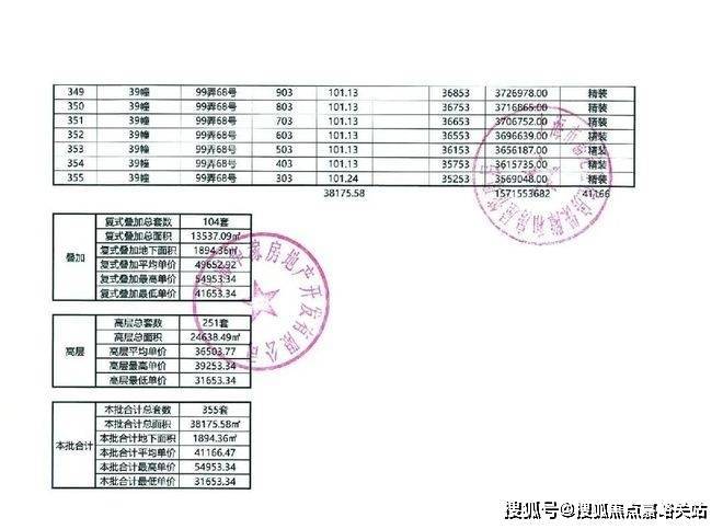 以下为项目最新一房一价表
