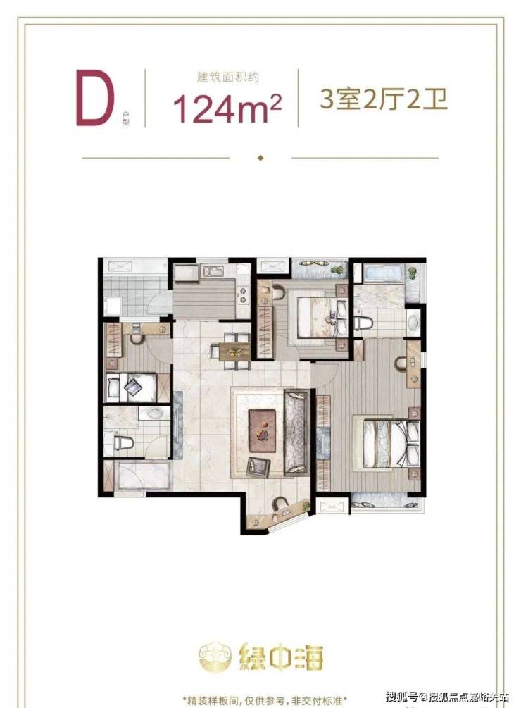 建面约124㎡3房2厅2卫