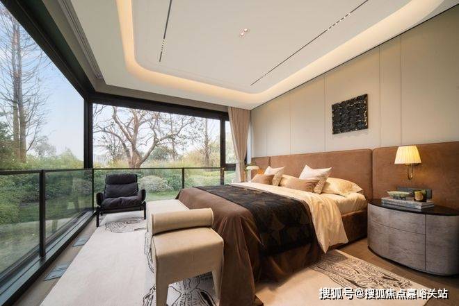 最震撼的还是这个主卧,很多项目只做L型转角飘窗,本项目升级为L型落地玻璃,视野无敌。