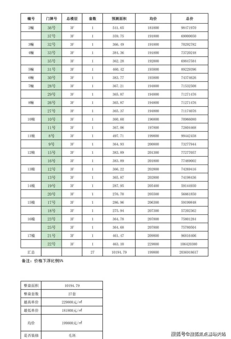 别墅一房一价表: