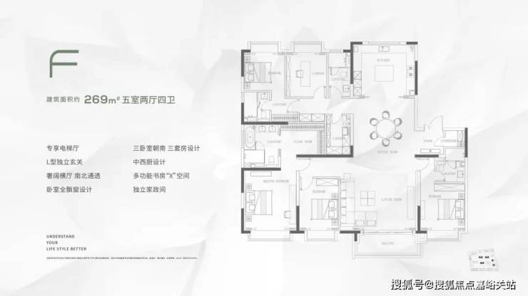 项目体量: 这是一个约88万平方米的超级 TOD 综合体,规划非常宏大。除了高端住宅,还自带超极合生汇商业广场、5A写字楼等业态,目标是打造一个一站式的生活圈。整个项目规划了约594户住宅,主力户型是建面约190-330㎡的大平层和洋房。