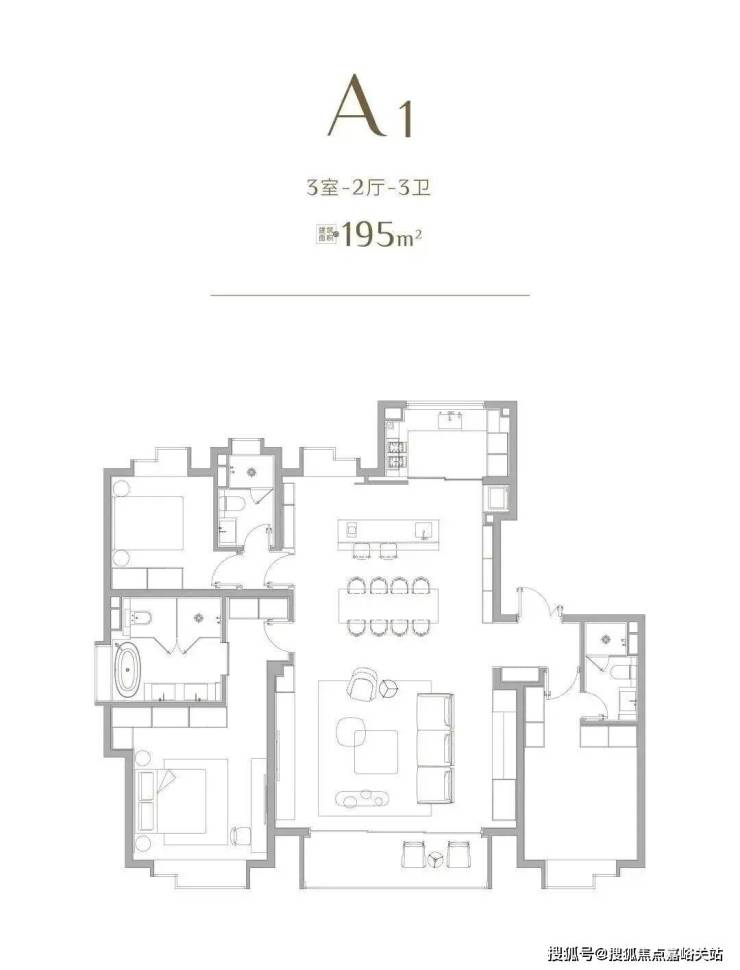 建面约195㎡大平层:终极改善顶配户型,阔绰横厅格局、全景落地窗设计,视野开阔无遮挡,主卧尊享独立卫浴、步入式衣帽间,大宅风范尽显,满足高端家庭对居住品质的极致追求。