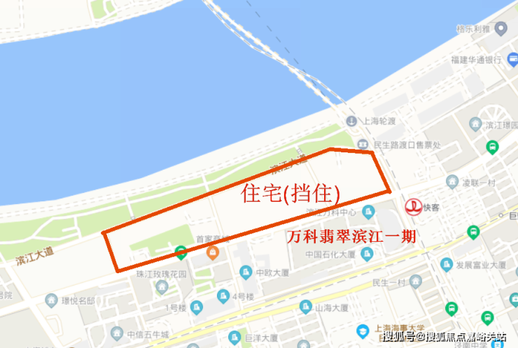 而E10单元的E08-4、E10-2、E12-1这3个住宅地块,刚好挡在昌邑路和黄浦江之间,昌邑路上的老牌豪宅万科翡翠滨江一期原本开阔直面浦江无遮拦,等新地块上的建筑物修造好以后,恐怕是以后要瞰江受阻咯。