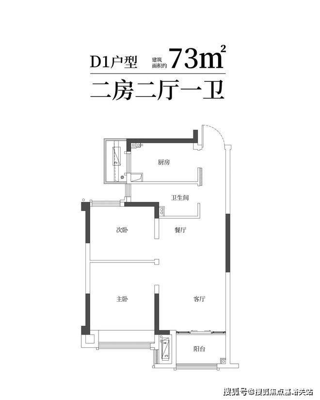 建筑面积约73㎡舒适两房一卫,年轻家庭的向往;