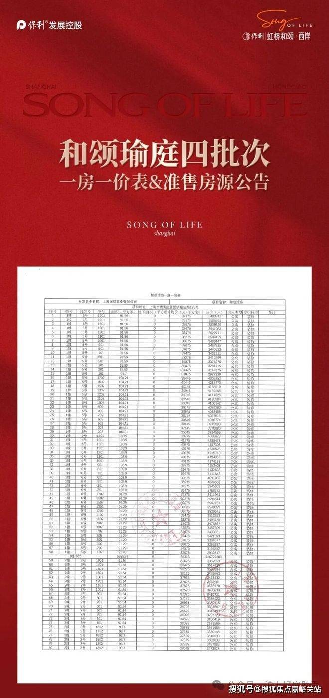 保利虹桥和颂三期一房一价表▼