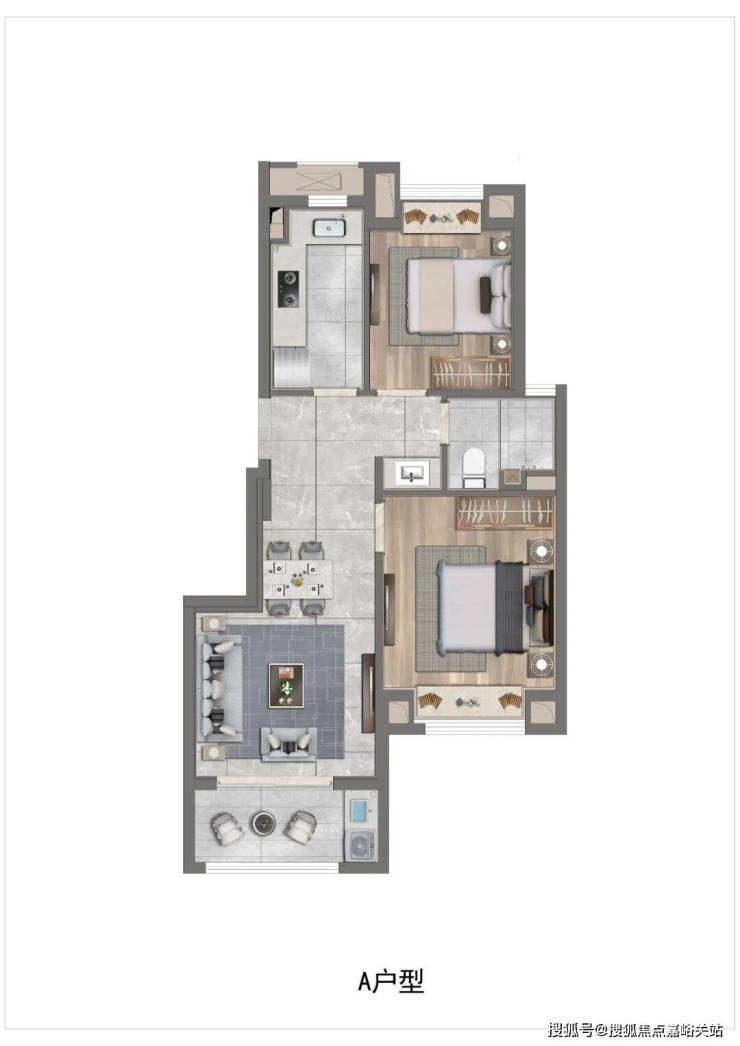 建面约74㎡两房户型,做到了双开间朝南+卫生间干湿分离+双卧室带飘窗+南北通透,附加价值很高,室内空间丝毫不显局促。