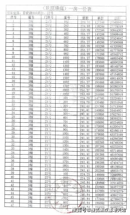 一房一价表如下: