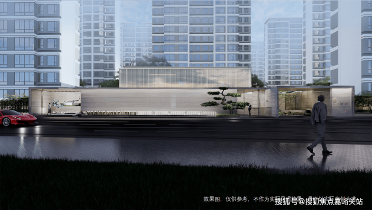 一进城市落客广场,取窗景与漏景结合的传统设计手法,营造从城市与社区无界的氛围感。