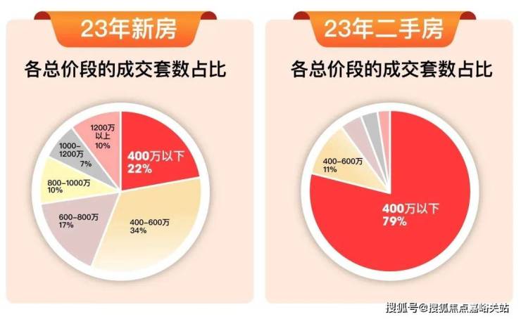 仅是2023年,总价400万以内的新房就已成交近1.2万套 ,占比约22% 。而在二手房市场,这一数据要高上7.6倍, 总价400万以内二手房成交9.16万套 ,占比约79% 。 当下,新房的性价比明显要略高于二手房,为何还会相差如此悬殊?