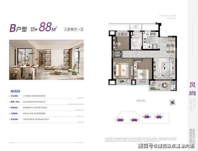 深嘉上府约88㎡户型,将三房两厅一卫的布局打磨得非常成熟。深嘉上府售楼处电话4008569058☑️☑️