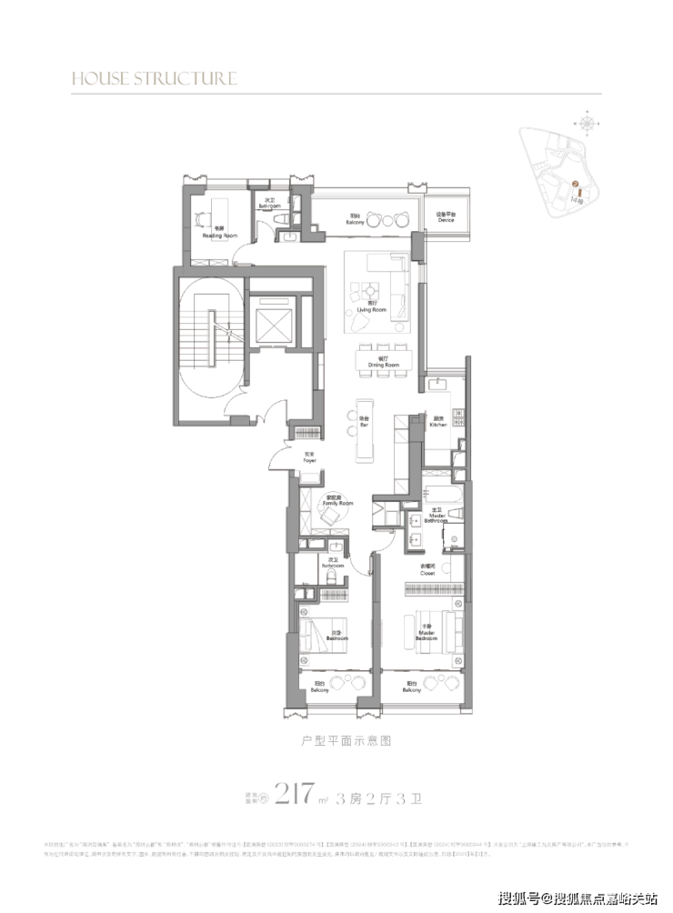 217㎡3房:总价约3100-3300万