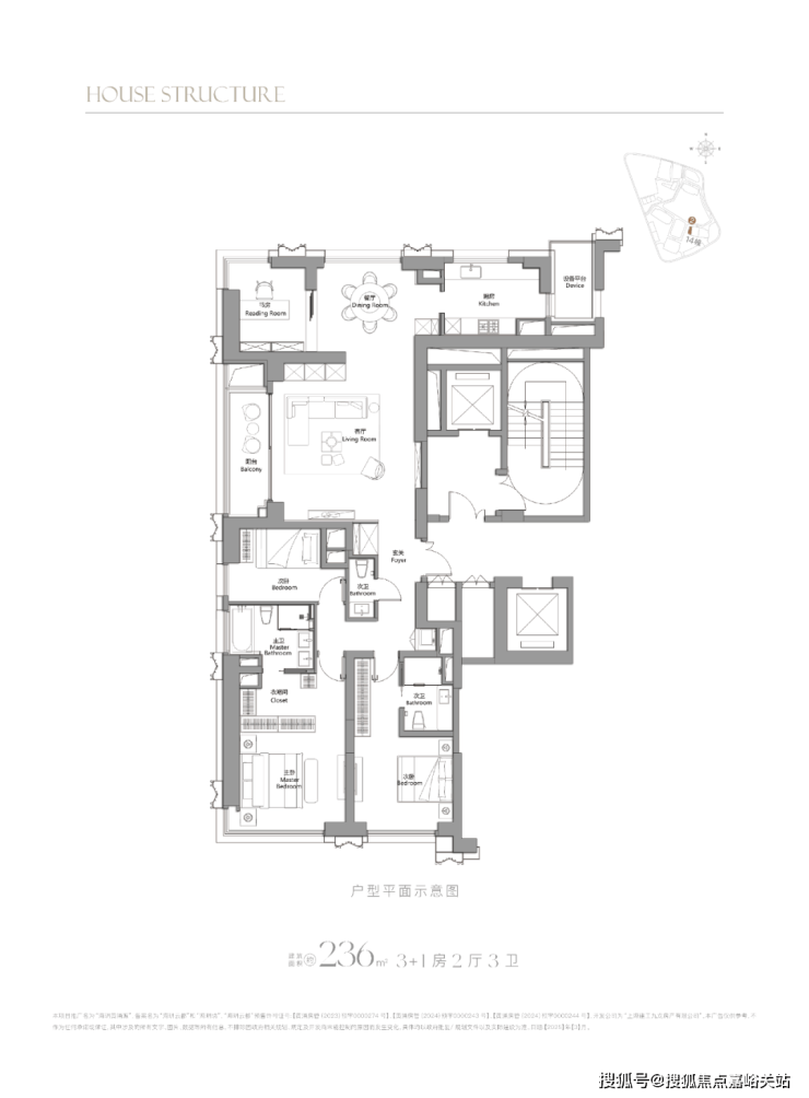 236㎡4房:总价约3580-3750万