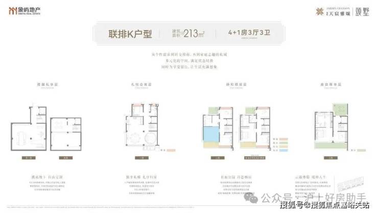 精心打造了 4+1房3厅3卫3露台1阳台 格局,还有 地下挑高约5.6米空间 , 地上地下均有独立入户大门 , 顶层主卧 以总统套间礼制精筑, 南向露台直面万亩公园绿肺!二层、三层拥有北向私享小露台, 终极改善置业的满分答案莫过于此,堪称是真正的传世级藏品别墅!