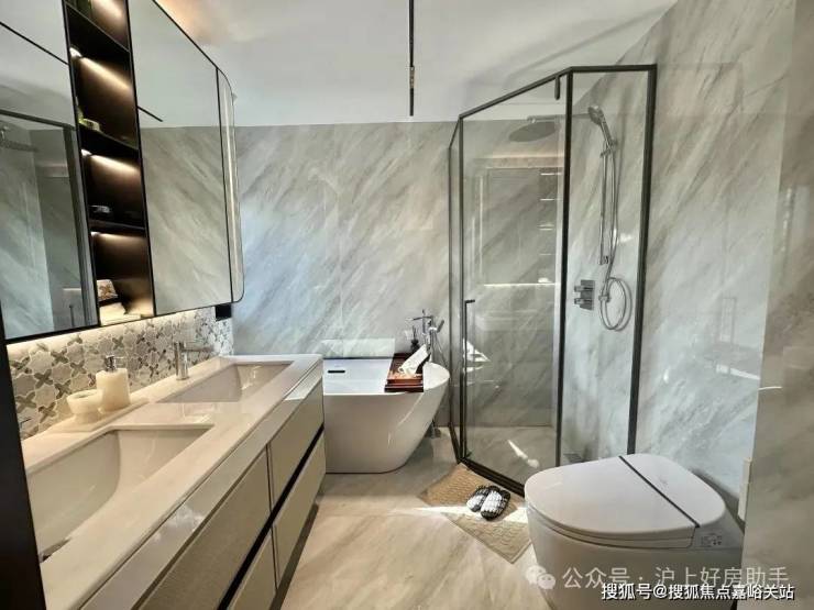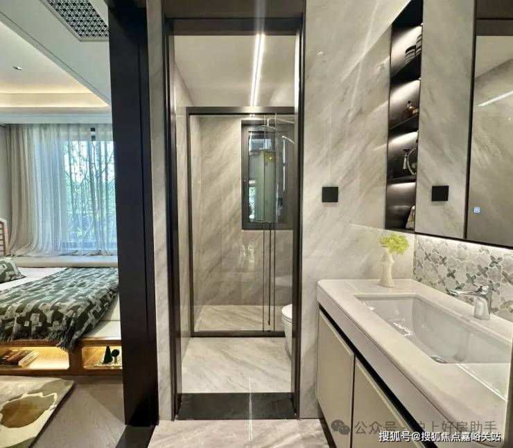 3、室内配置拉满!比肩豪宅臻装! 博世厨电、唯宝卫浴 等国际品牌,同时搭载 全屋智能系统、套内独立电梯 配置,以科技赋能宋式风雅!