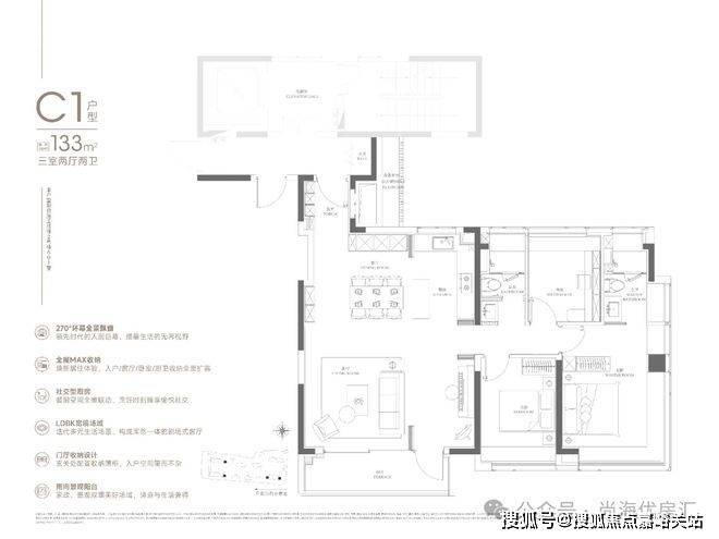 133㎡可以说是108㎡的进阶款,望雲TOD售楼处vip贵宾预约热线:400-118-5086√√√【已认证】同样的三房两厅两卫,大面宽横厅、半开放式厨房设置岛台,加上主卧L型飘窗,再一次验证了华润置地豪宅化的产品思路。