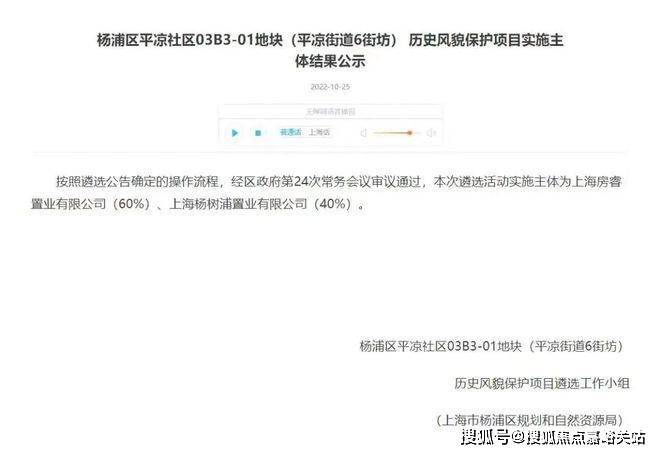 2022年10月25日,杨浦区人民政府官网发布公告,瑞安翠湖滨江售楼处电话☎:400-8266-670✅✅杨浦区平凉社区03B3-01地块瑞安翠湖滨江售楼处电话☎:400-8266-670✅✅(平凉街道6街坊)历史风貌保护项目实施主体结果公示:“本次遴选活动实施主体为上海房睿职业有限公司(60%)、上海杨树浦置业有限公司(40%)。”