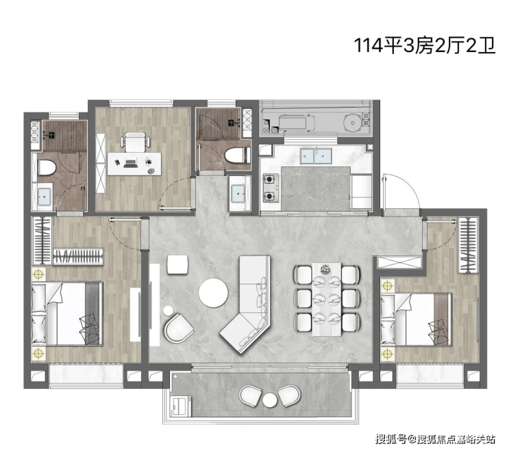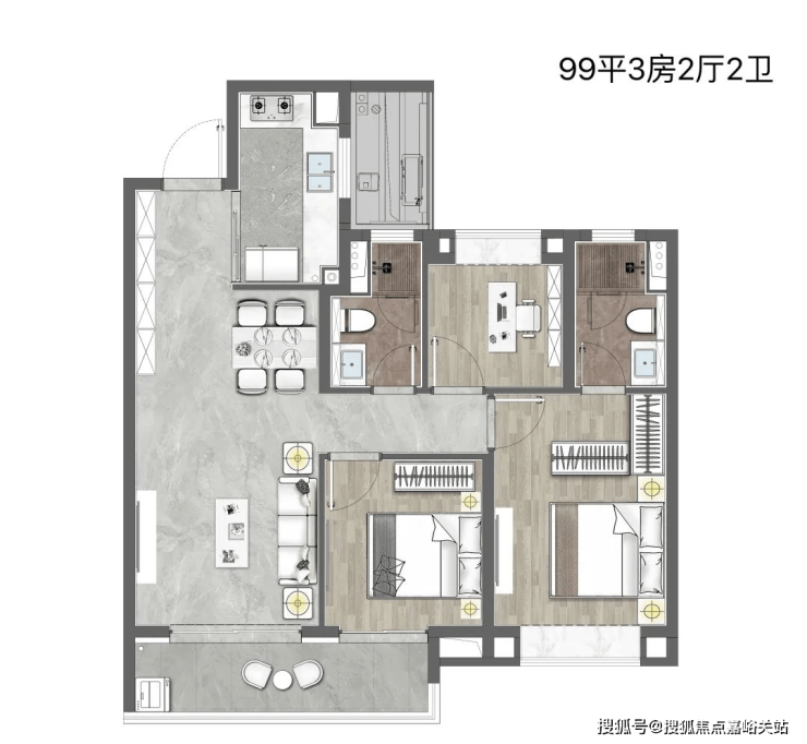 大面积的套房尺度,大尺度进深、从容有余的居住空间,奢阔飘窗、独立卫浴配置,打造尊崇的奢雅体验。百平米内的不将就三房,实现房间数量及空间尺度的均好平衡。