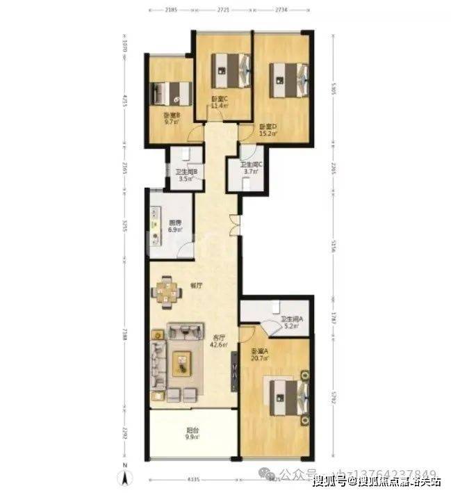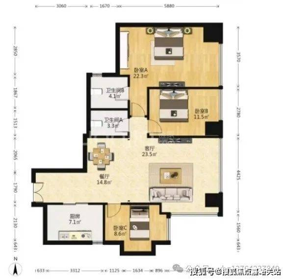 105平 (户型均一样,装修仅供参考)