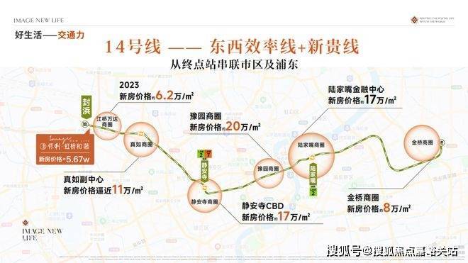 作为上海最后一条贯穿市区的烫金轨交,14号线能级超群,串联真如、静安寺、新天地、陆家嘴等顶级CBD,可与13条轨交换乘,通达全城无压力。更值得关注的是,项目1站可换乘嘉闵线,未来 3站直达虹桥枢纽、6站至七宝、7站抵莘庄;3站可换乘机场联络线,以160公里/小时时速衔接浦东三林滨江、张江及浦东机场。加之14号线向西延伸至安亭产业城,持续扩容产业客群,无论工作地点在浦西、浦东还是闵行,都能从容应对。