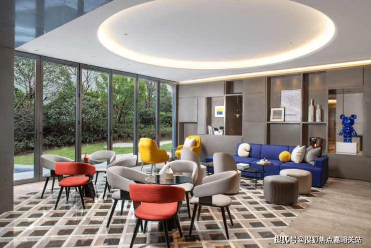 还有吧台、休闲洽谈区、共享会议和健身等功能区,是一个适合交友、会客、休憩、工作、读书、赏景的多功能空间.处处可见的时尚元素,符合当下年轻一代喜好。