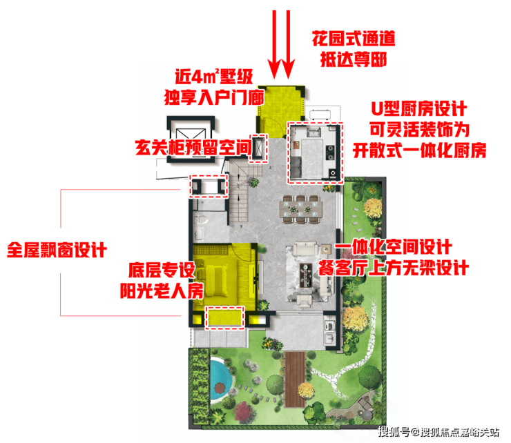 第一、不需要经过门厅及电梯厅的独立入户方式,做到独门独院的感觉,尊享感和仪式感拉满。