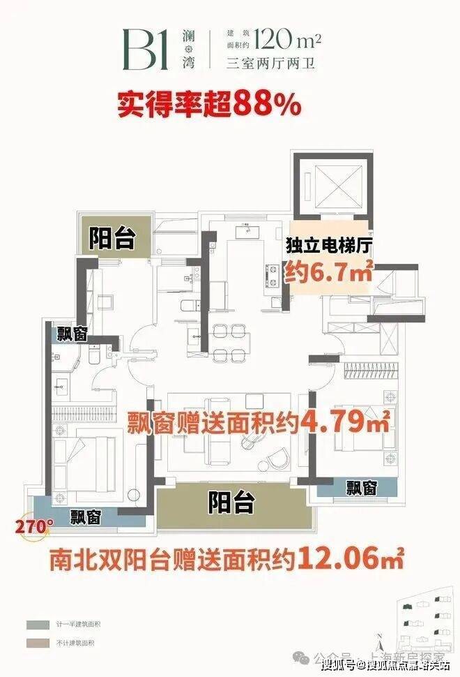 高实得率+ 独立电梯厅 +南北双阳台,