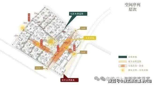 士林润园社区规划可分为蓬莱路城市公共景观以及社区内部景观两个部分,其中市政绿地衔接于上海2035城市总体规划中“蓝绿丝带”的上位条件要求,社区内部街巷空间形成空间序列形成递进的层次,将归家体验的序列依次展开,形成城市街道→入口(一级门户)→街巷→节点空间→里弄门(二级门户)→合院入户(三级门户)的方式,基本可保证大多数住户可体验到两重以上的空间递进。