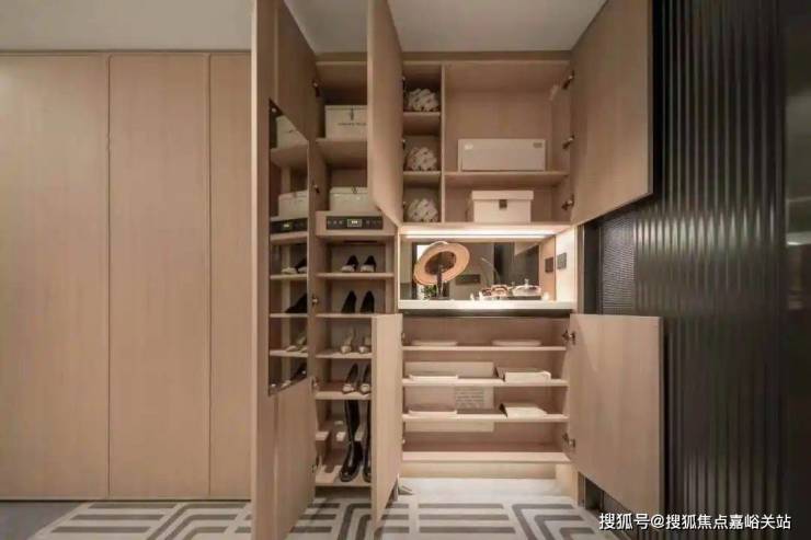 入户门厅以 弧形悬浮顶棚 为特色,为业主带来柔和温润的归家关怀,让归家的每一步都充满舒适与惬意。